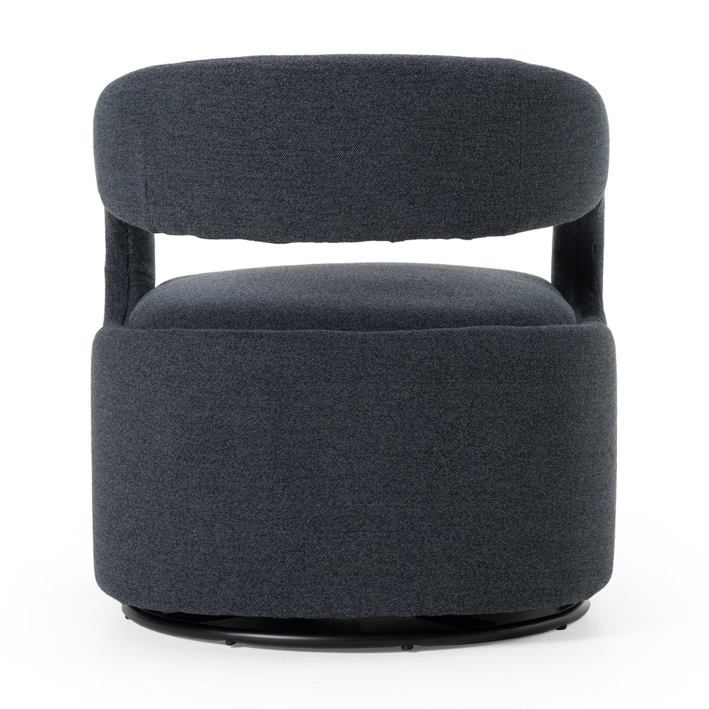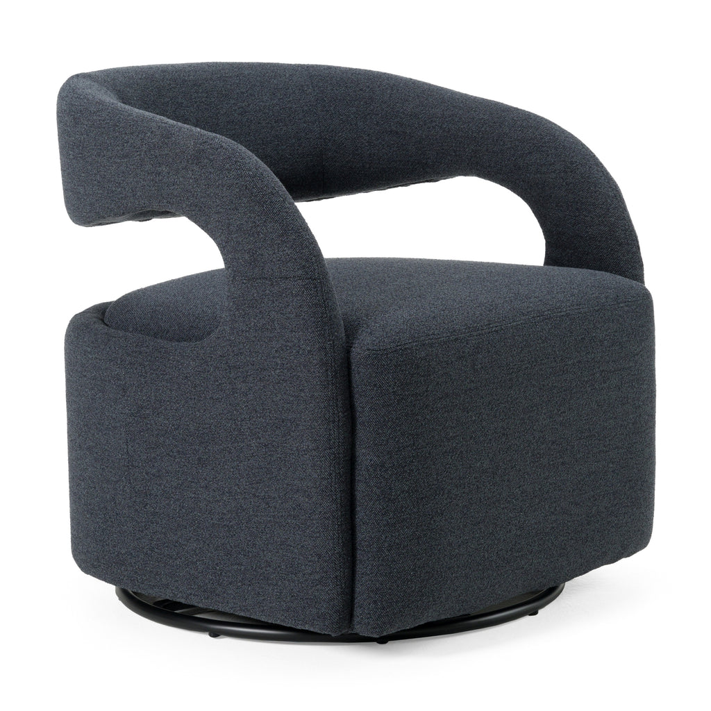 The Modrest Dowsett - Modern Charcoal Fabric Swivel Accent Chair is a stylish and functional piece perfect for modern interiors. This accent chair features a swivel base, allowing for easy movement and versatility in any room. Upholstered in 100% polyester fabric, the chair comes in a sleek charcoal color, complemented by a sturdy frame made of metal and manufactured wood. The chair is designed with flared arms and a split back, offering both comfort and aesthetic appeal, and it comes fully assembled, ready to enhance your living space.