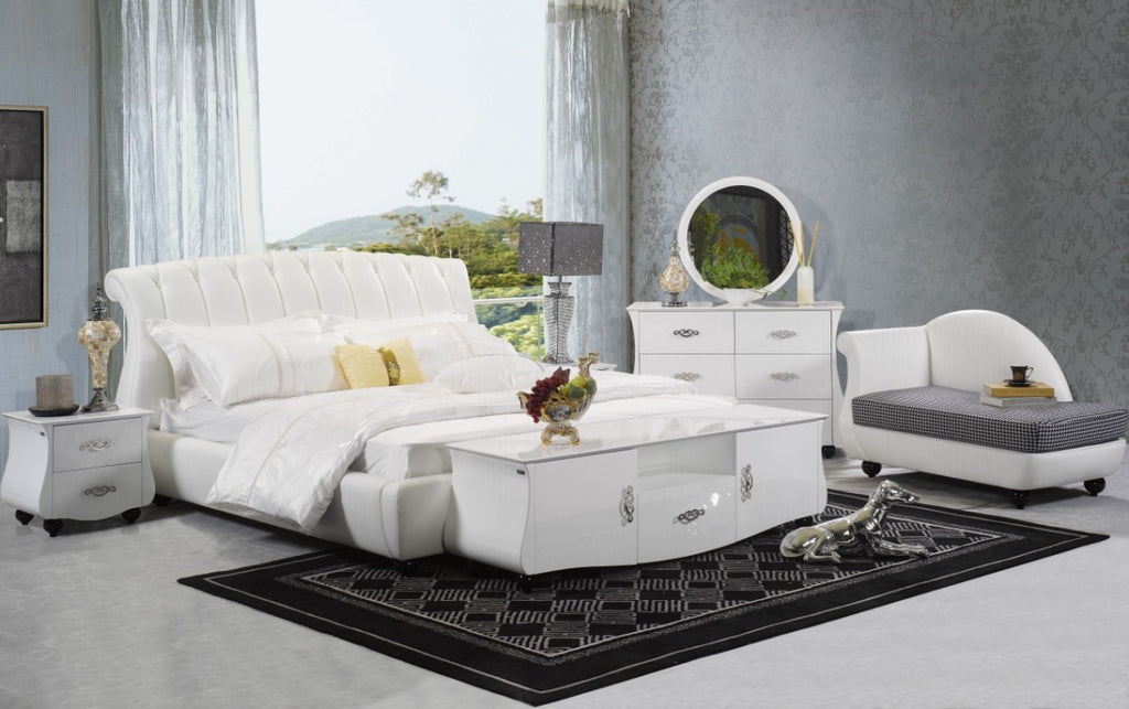 Modern onion-clove shaped headboard Elegant and Sturdy DesignUpholstered in a white leather-match materialFeatures a modern charmPearl White Gloss FinishAdditional set pieces available