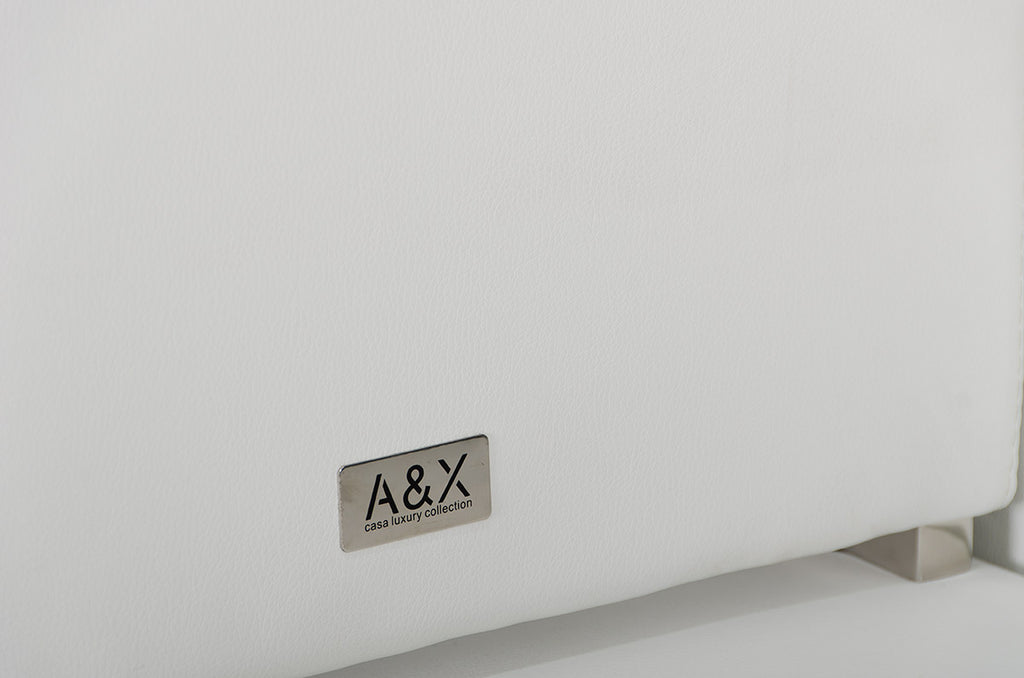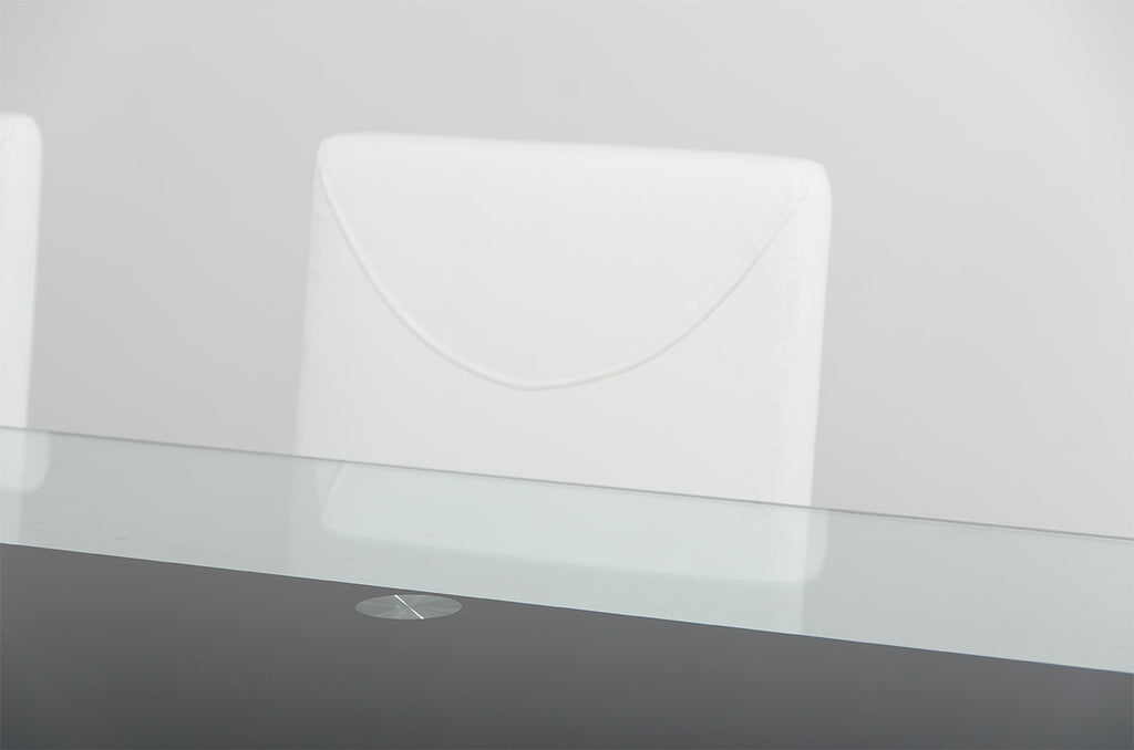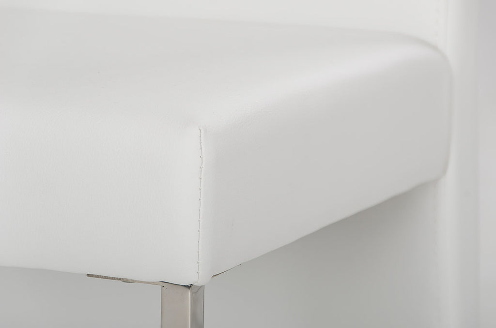 This stylish design contours in shape with an extended back support not only for design but for additional comfort and has a unique leg base. The chair features a stylish L-shaped chrome support and leatherette descending lavishly to the base of the chair to give off a finish of sheer elegance.