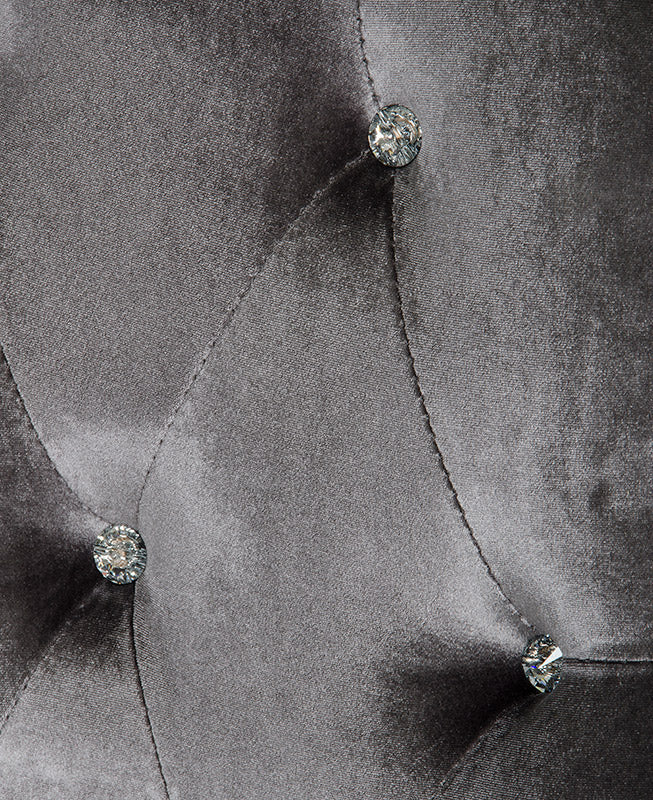 The AA031 Armani Xavira velour dining chair features a regal design with artificial crystals on tufts. Upholstered in velour fabric, it has high gloss legs with straight front legs and slightly curved back legs. This well designed dining chair has a strong and sturdy construction, with 2 chairs in each box.