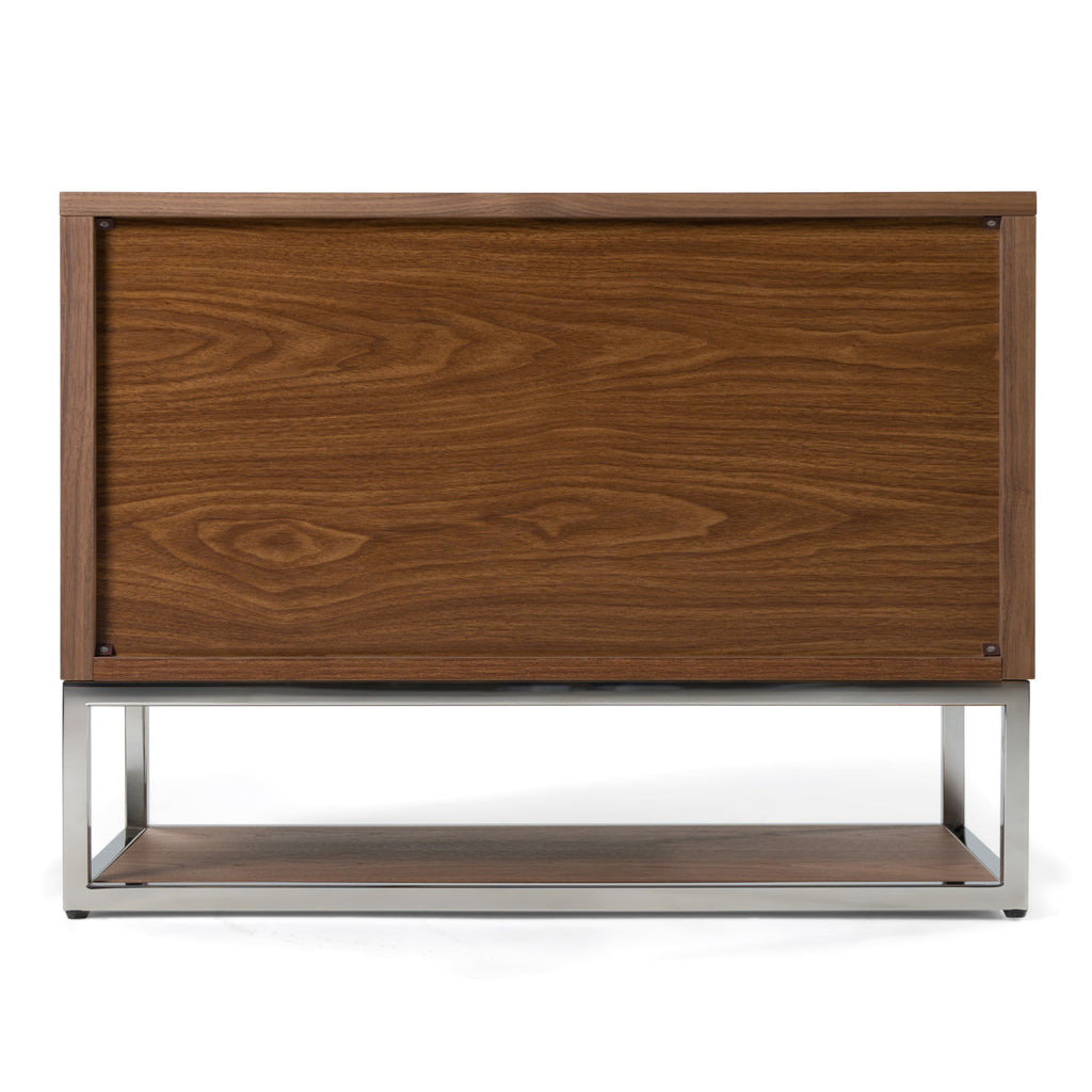 Walnut Veneer Finish Stainless Steel Hardware Two Drawers Soft Closing Drawer Mechanisms Finished Back No Assembly Required