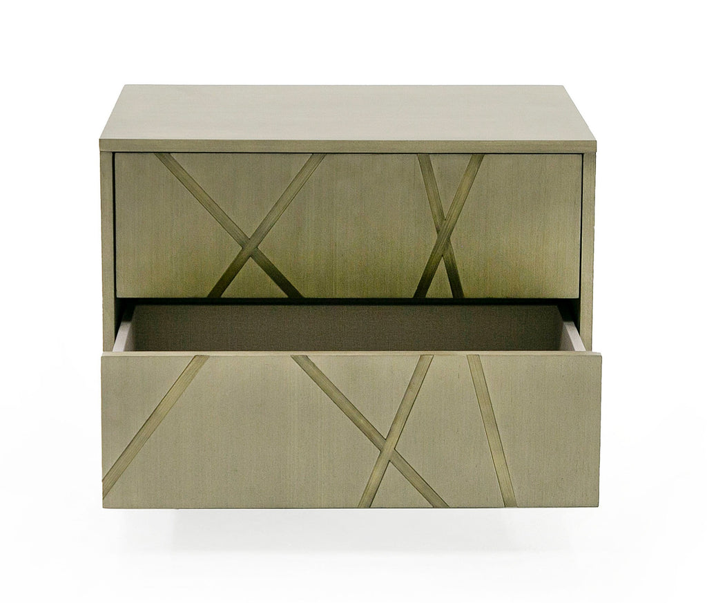 The Modrest Nixa Modern Birch & Brushed Bronze Nightstand features a cubed design and incorporates two soft-closing drawers that glide conveniently via the hand pulls. Cross-sectioned bronze-painted accents lend a stunning and awesome frontage. Button-shape legs offer sturdy support to this handy well-made Nixa modern nightstand.