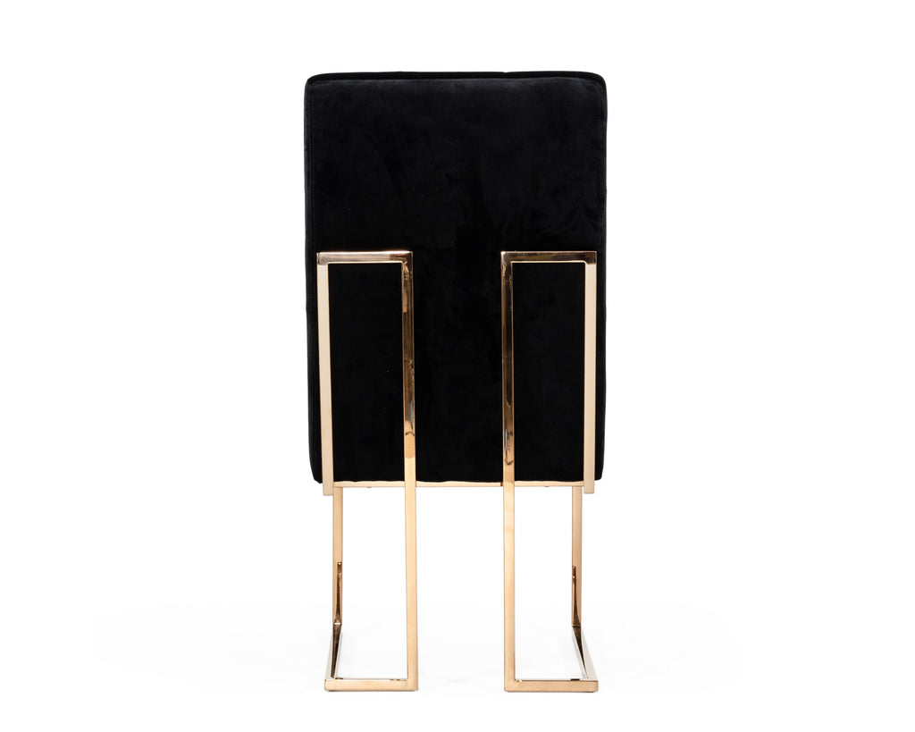 Upholstered in Black Velvet MD-CC250-29 Rose Gold Stainless Steel Exposed Frame and Legs Sold in Sets of 2 Weight Capacity 250 lbs. Fully Assembled