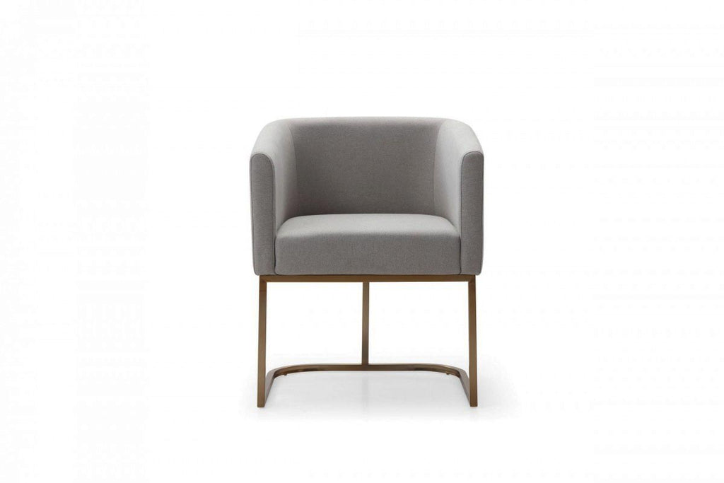 Our most popular style on dining chair is back in new colors! The Modrest Yukon Grey Fabric & Antique Brass Dining Chair features an amiable design upholstered in grey fabric. Stylish U-shape antique brass finished stainless-steel base provides steady support. Our most versatile contemporary piece is now available for you!
