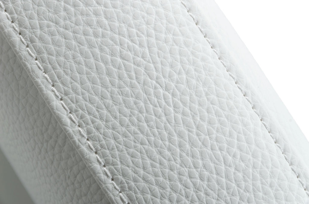 Upholstered in White Leatherette Stainless Steel Exposed Frame and Legs Solid Birch Inner Frame Plastic Furniture Glides Plain Seat Back Style Weight Capacity:250lbs Full Assembled