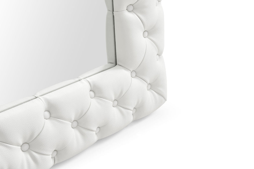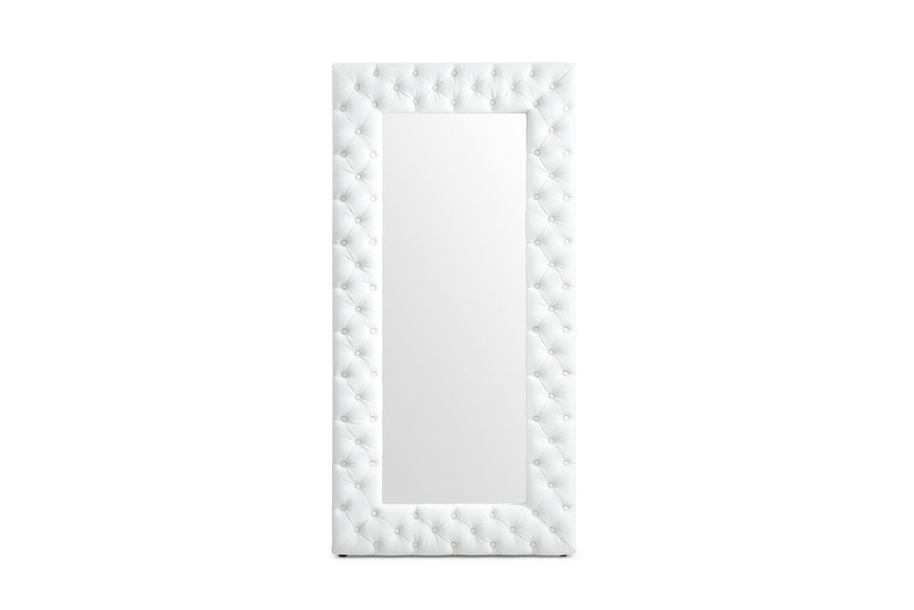The Legend Floor Mirror is a home accent staple. This modern contemporary piece is the perfect addition to your home. Faux leather upholstery is diamond button tufted to create elegance and class.