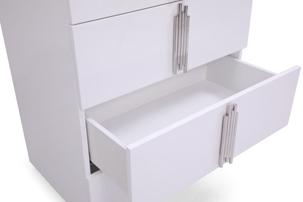 White High Gloss Stainless Steel Handles 5 Drawers Self Close Drawer Painted Finished BacK Drawer Weight Capacity:44 lbs No Assembly Required