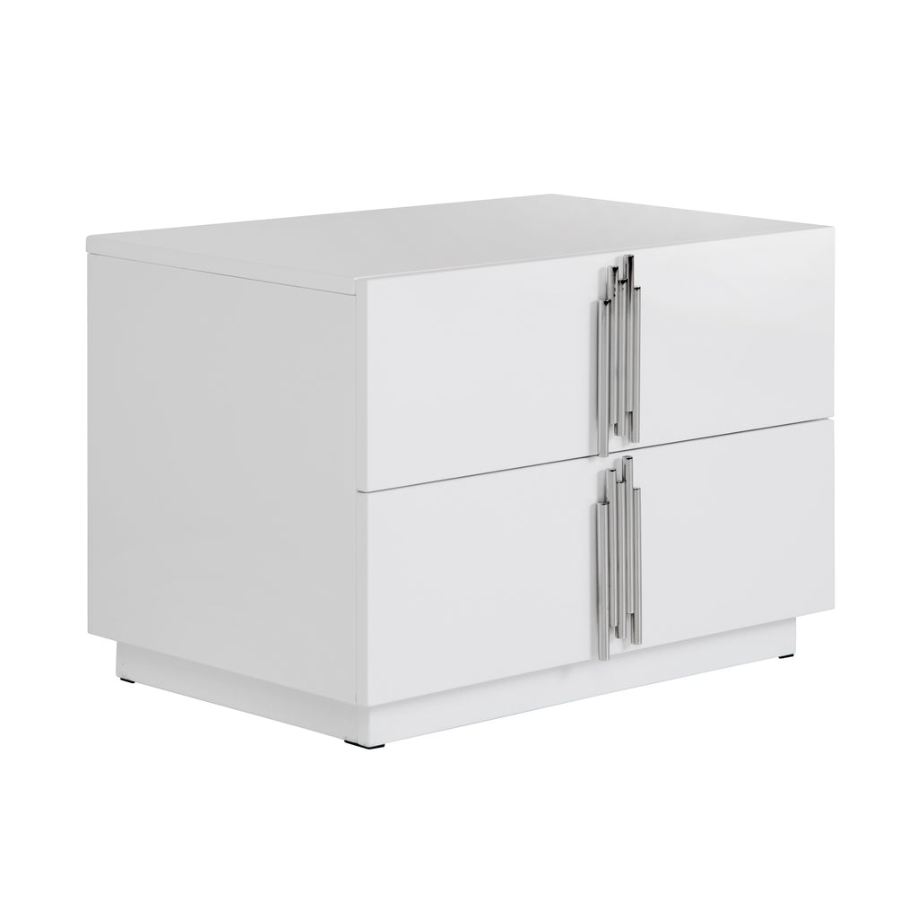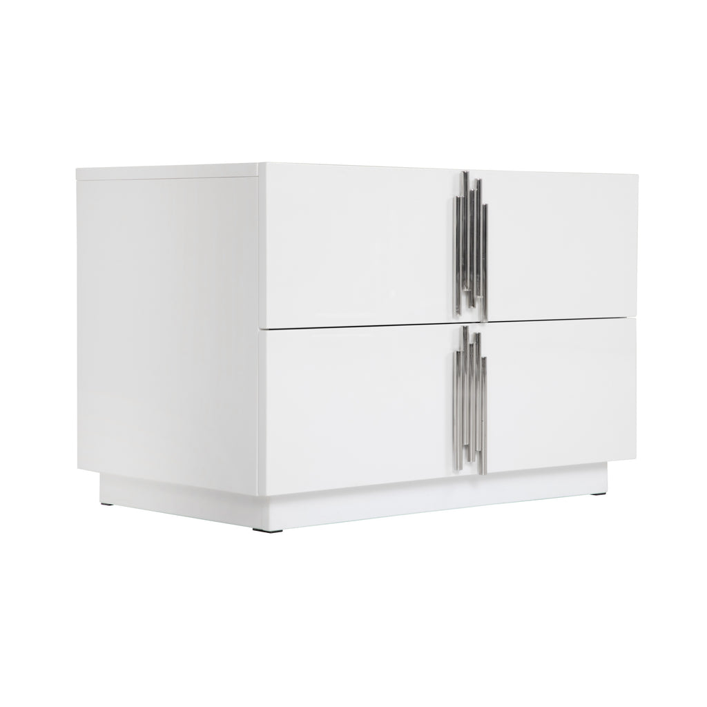 The Modrest Token Large Nightstand is a masterpiece of modern sophistication, exuding elegance through its sleek white high gloss finish and refined stainless steel accents. With two spacious, self-closing drawers, it seamlessly combines style and functionality, offering ample storage while maintaining a streamlined silhouette. This nightstand is more than just a functional piece; it’s a statement of refined taste, adding a touch of luxury to any bedroom with its minimalist yet impactful design. Its smooth, glossy surface reflects light beautifully, creating an ambiance that is both calming and effortlessly chic. Perfect for the discerning homeowner, the Token nightstand brings a subtle yet powerful allure to the modern bedroom.
