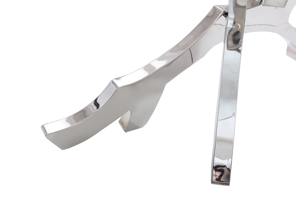 The sculptural base of the Legend Dining Table is a marvel of interior styling. The stainless-steel pedestal base twists and turns creating natural and modern interpretive shapes. The strong contrast between the metal and glass top creates drama in any space. Pair it with the full legend collection for a dining experience that will take your breath away.