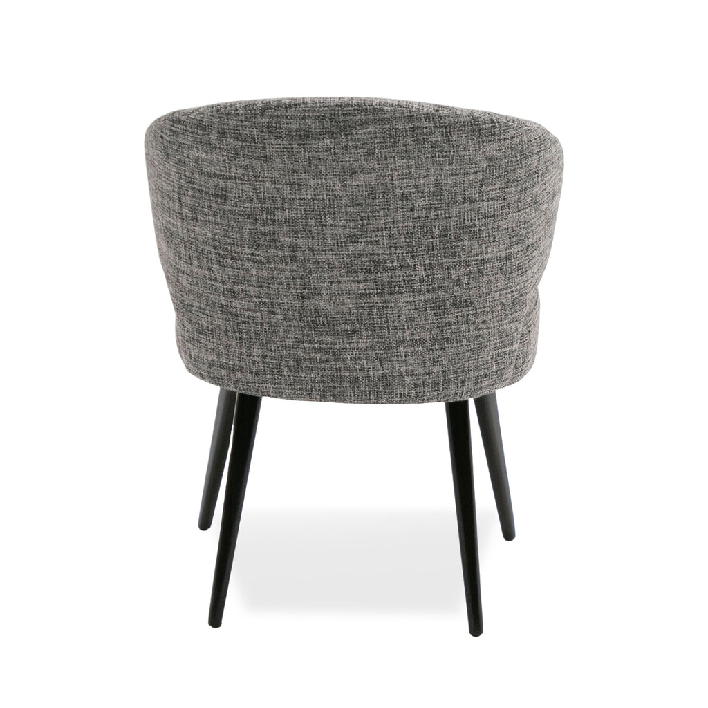The Modrest Carlton Modern Grey Fabric Dining Chair showcases clean lines featuring grey fabric upholstery with tapered black wood legs. The downward slope of the backrest leads to a comfortable seating position and allows you to rest your arms cozily at the same time.