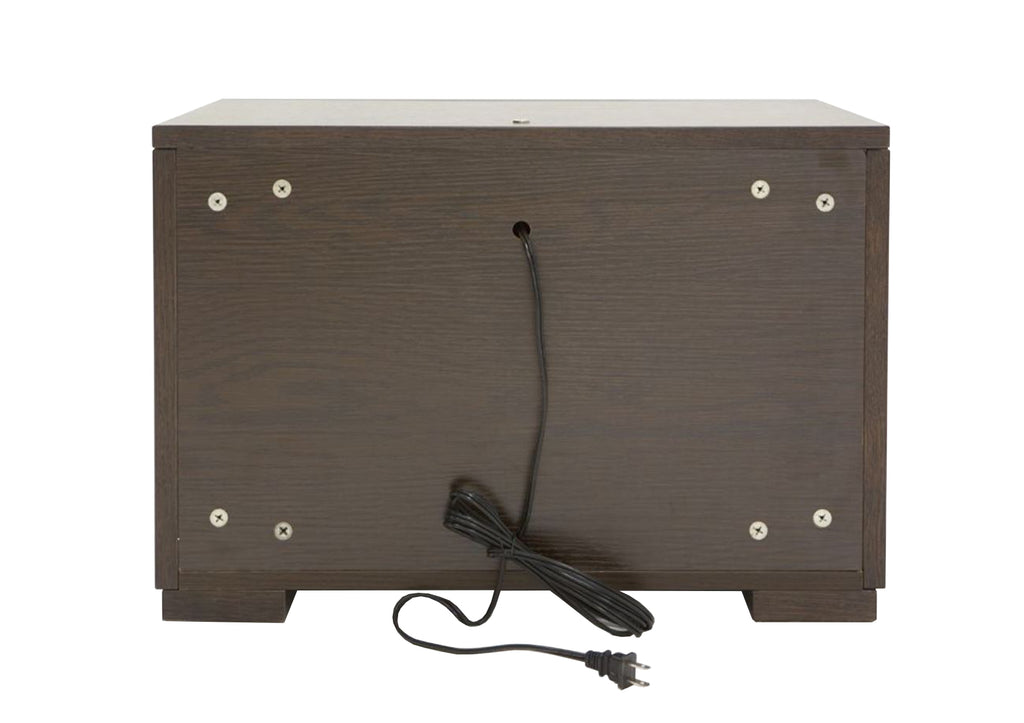 An LED light in the top grey cubby provides not only accent lighting but functional lighting for early morning or night time use. Two drawers administer abundant storage for your reading glasses and favorite book. Finished in a brown oak wood veneer for a warm and contemporary design. Matching set pieces available separately. Also available in a white gloss finish.