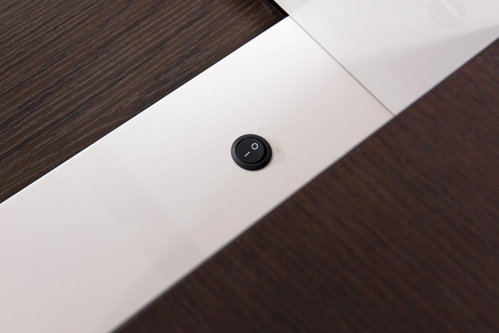 The deep brown oak of the Torino Bed is prominent against the soft grey gloss paneling that color blocks of the headboard. An extended platform with lighting features that highlight the extreme silhouette of this beautiful bed. The nightstands are built into the extended platform with stainless steel accents. This lovely low bed creates a modern Zen garden in your home.