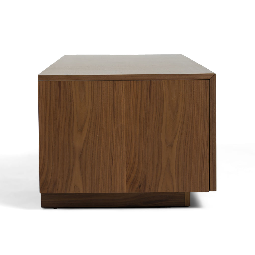 A smart way to keep your viewing and storing your electronics and television consoles in order is the Frost Modern TV Stand. Featuring 4 cabinets with doors and drawers, it has a Walnut veneer finish surface with black glass windows to complete the look. This finely designed modern TV stand lends your home a dashing loo while doing away with unruly cables are the holes at the back.