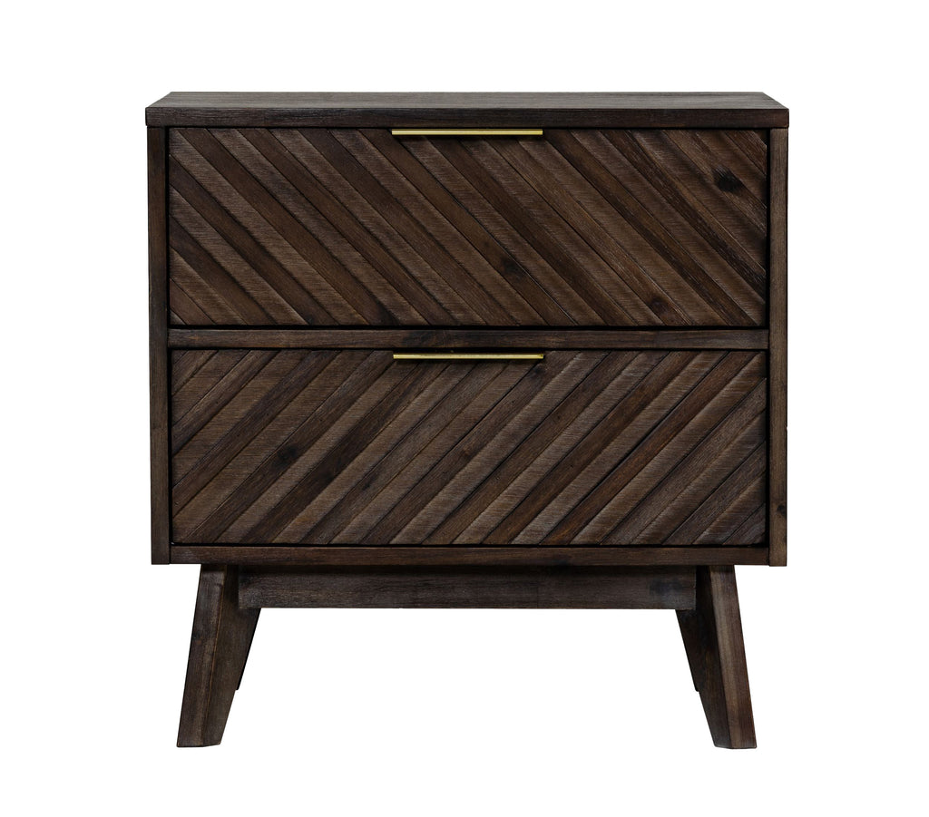 Dark Acacia Solid Wood Chevron Pattern Style Drawer Fronts 2 Drawers Ball Bearing Drawer Glides Drawer Weight Capacity:7 lbs. Brass Handles No Assembly Required