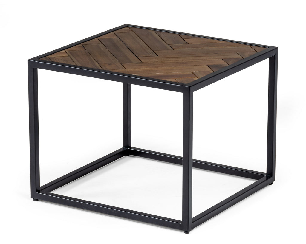 The Pasada end table is the perfect industrial or farmhouse accent piece for your home. The chevron patterned top and black metal base are unique