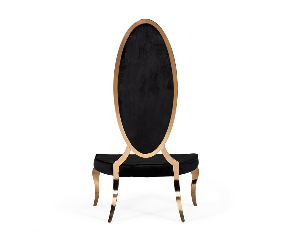 The Mills Dining Chair Set is sure to knock your socks off. The gold stainless steel frame creates a glamorous atmosphere while the rich black velvet upholstery adds comfort. The high back and wide seat are designed for your comfort and accessibility. It will fit perfectly in any traditional or glam dining room.