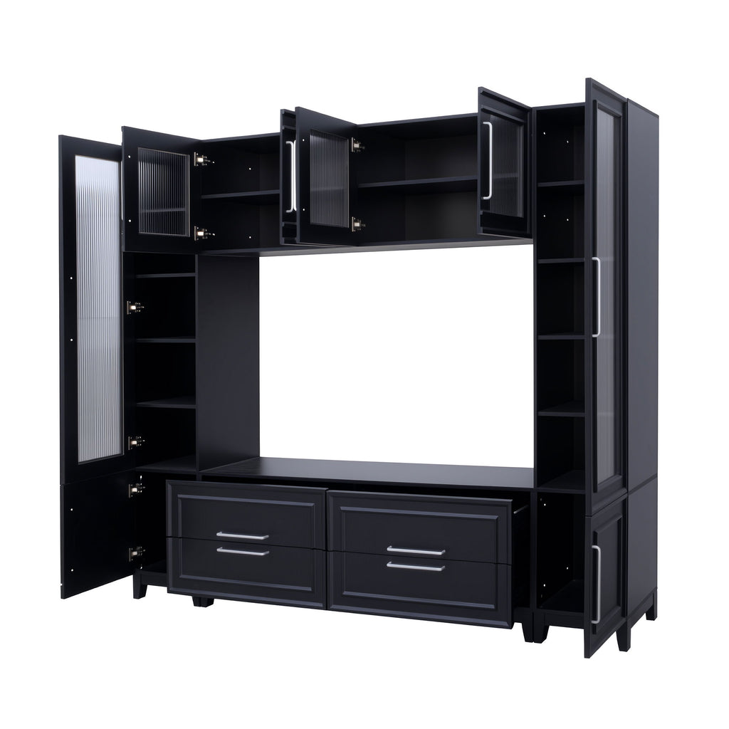 Wall Unit Modern Entertainment Center With Glass Doors For TVs Up To 75" For Living Room - Black