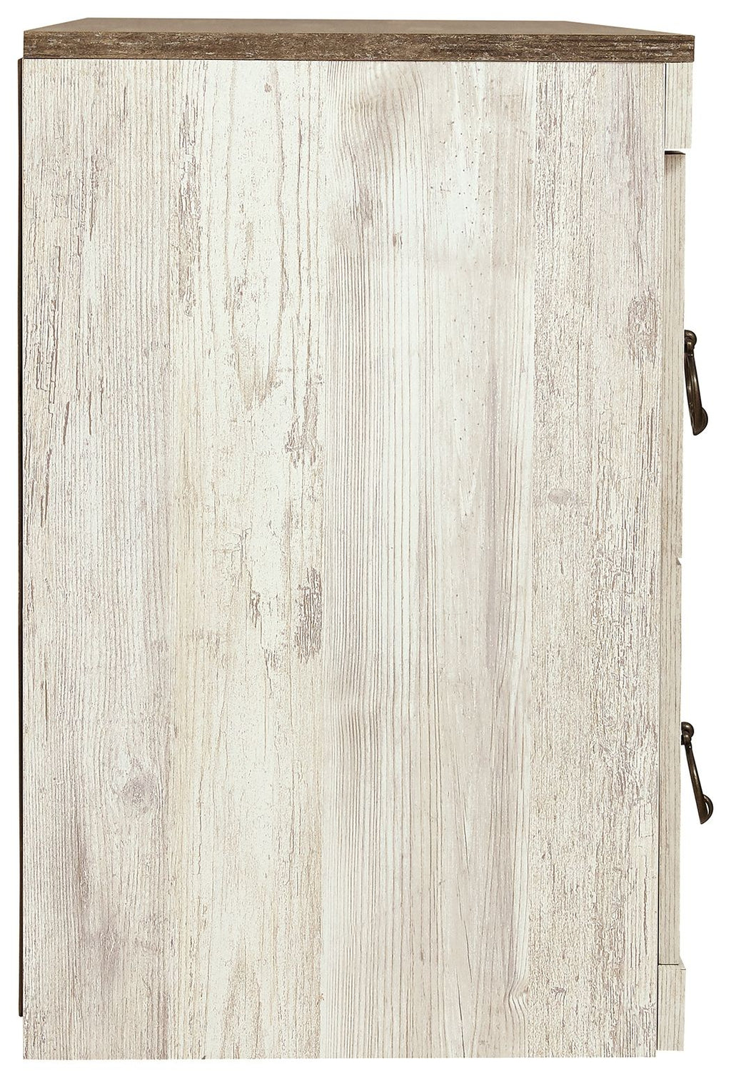This entertainment center with fireplace option is the ultimate statement piece for your coastal cottage or shabby chic inspired retreat. Whitewashed finish is wonderfully easy on the eyes. Paired with the TV stand’s unique plank-style top, it’s a driftwoody look that has our minds drifting away to beachy-keen escapes. Two tall piers with glass shelving and soft overhead LED lighting allow you to put home accents on display, safely out of the way. This entertainment center is compatible with LED electric fireplace insert (W100-101 or W100-02) or large audio insert (W100-41), which are sold separately.