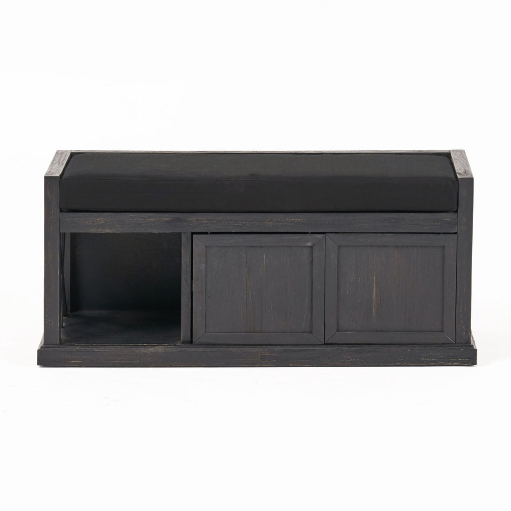 Wood Bench With 2 Open Shelves And Water Resistant Cushion - Dark Gray