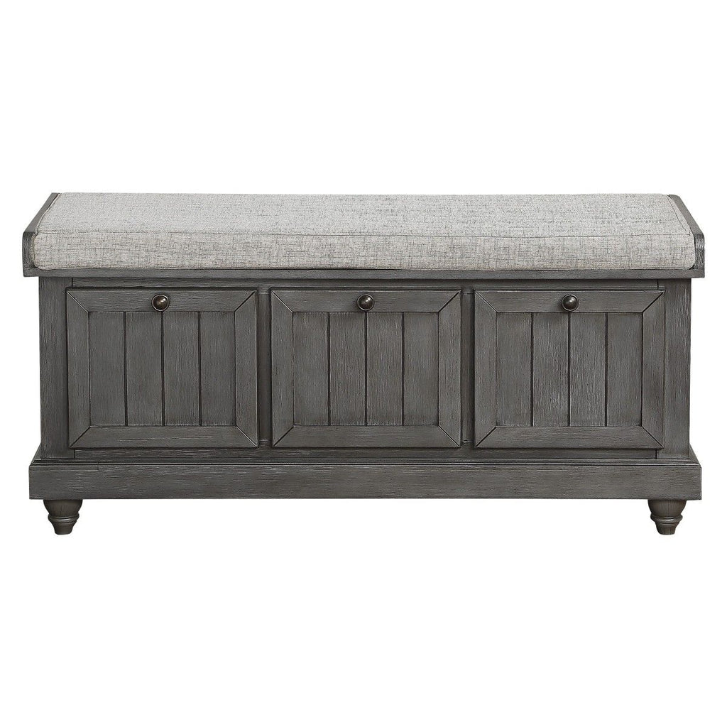 The Woodwell Collection will be a functional addition to your home. False drawer fronts serve as the base for this lift-top storage ottoman. A neutral tone padded seat provides a comfortable spot to sit as you prepare for your daily outings.
