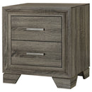Augment your styling and approachable bedside with a transitional two-drawer nightstand. Delivering a touch of farmhouse charm and casual ambiance, it provides plenty of storage at your bedside. Its wide top is ideal for a reading light or a vase, offering a perfect space for personal touches. A brown oak wood grain finish graces laminate surfaces that are specifically engineered to resist scratches and dents. Bar handles decorate drawer fronts while mitered trim and tapered block legs add the perfect touch of precision and dimensionality.