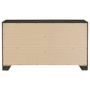 Complete your bedroom storage ensemble with the roomy space in this transitional six-drawer dresser with a framed mirror that attaches directly to the back of the dresser. It boasts a brown oak wood grain finish over laminate surfaces, creating a stylish look that resists everyday wear and tear. The dresser delivers roomy storage in drawer with smooth metal glides and bar pulls, adding the perfect hint of contrast and depth. Mitered trim adorns the front of the case and complements the frame on the mirror to create a sense of angular precision. Use the wide top for a jewelry box and a vase of flowers, or select decor that brings personalized aesthetics to your inviting bedroom.