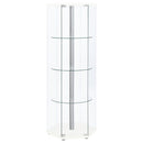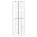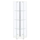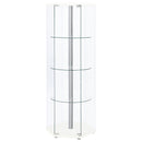 Three round clear tempered glass shelves provide strength to support your display items